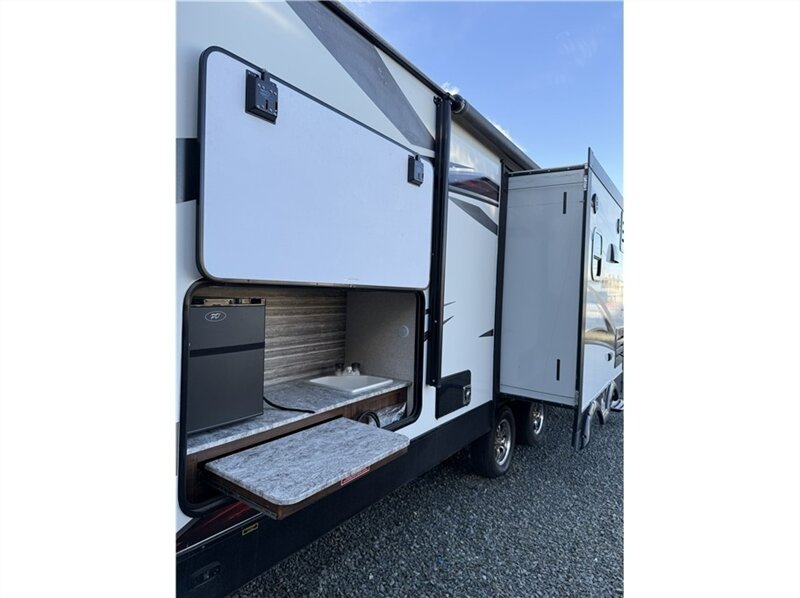 Kitchen: The outdoor kitchen has a sink and an RVQ grill that mounts on the bumper.