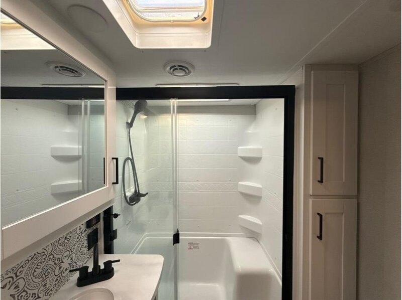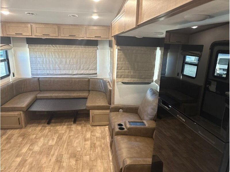 Exterior: Heated pass-through storage, outside shower, automatic main awning, and outside speakers