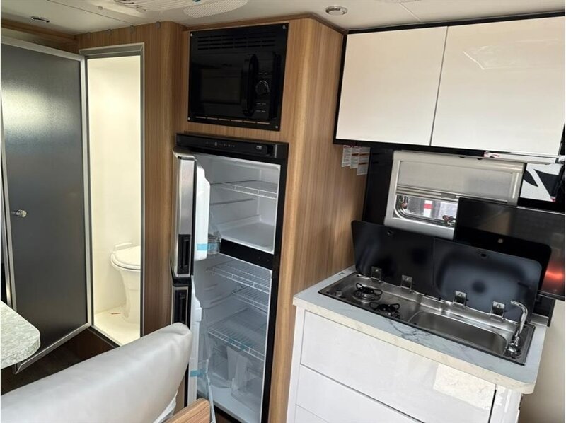 Water capacity: 63.4 gallons of fresh water, 26.4 gallons of gray water, and 26.4 gallons of black water.