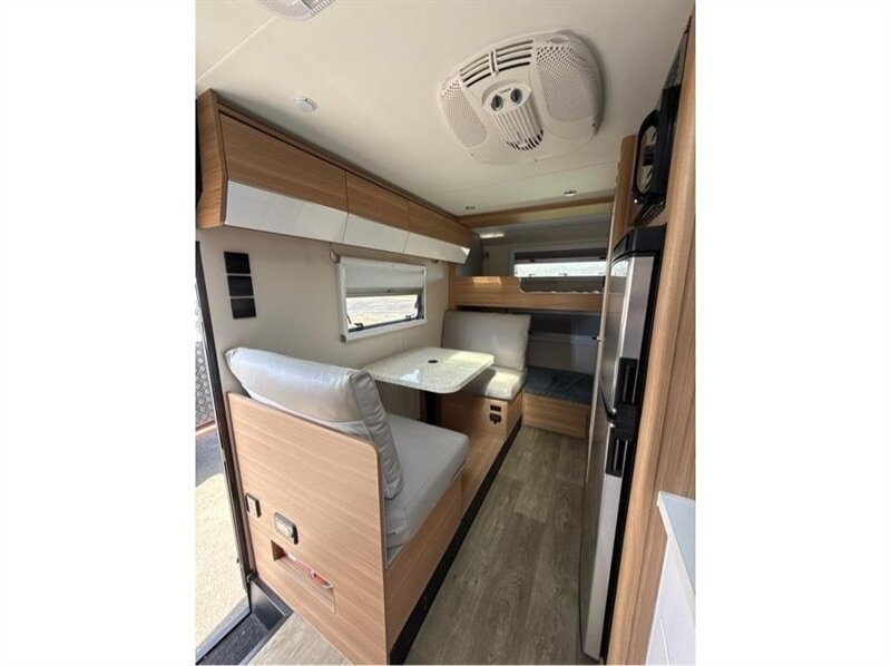 Lounge: The multi-functional lounge area features paired seating and an adjustable table that can be converted into a sleeping space.