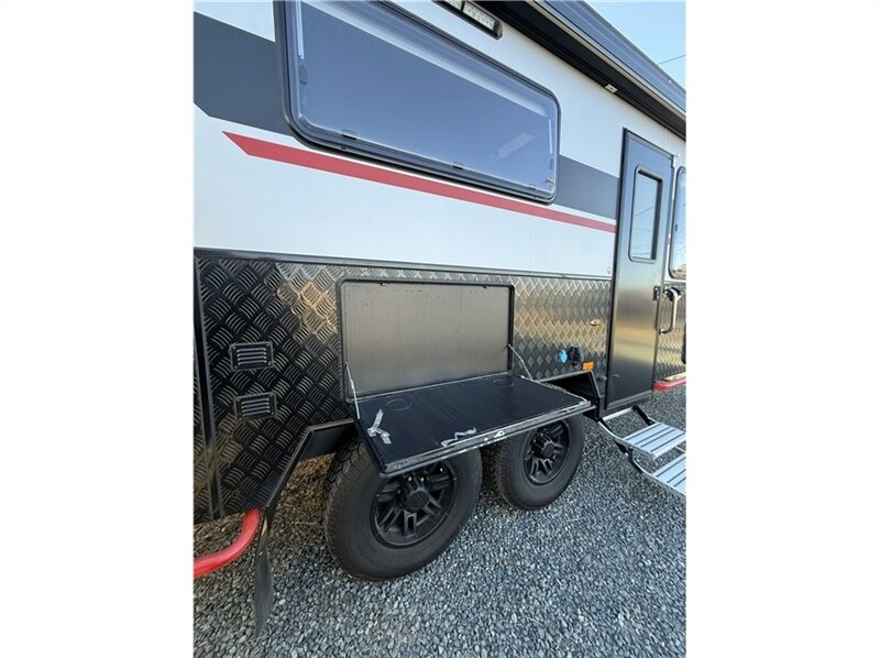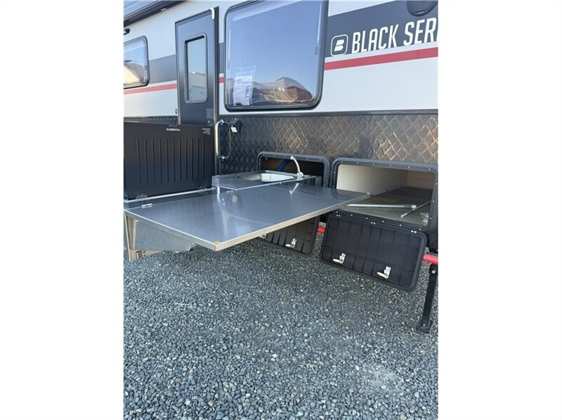 Storage: Ample storage is available throughout the camper, including pass-through storage accessible from both sides of the trailer.